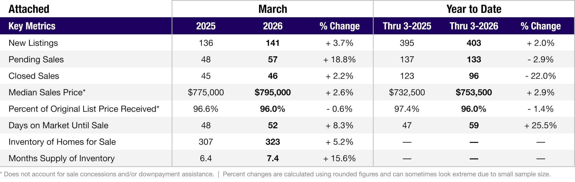 Inventory remains lower than this time last year, though it has ticked up slightly from last month. Buyer activity has also improved, with more homes going into escrow since the start of the year, supported by mortgage rates that are lower than a year ago. Detached home prices continue to show modest growth, while condos and townhomes have softened slightly. Overall, the market remains competitive in the lower price ranges due to limited inventory, while higher-end homes are moving at a more measured pace.